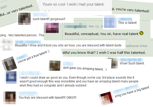 اگر شما به گروه اول تعلق دارید، خوب است که به افراد اجازه دهید تا بدانند که به نقد احتیاجی ندارید، نه تحسین های غلط. بازخورد می تواند به پیشرفت شما کمک کند، اما این انتخاب شماست. و اگر شما در گروه دیگر قرار دارید حقیقت را بپذیرید که شما بد هستید. فقط آن را باور کنید. همه ما می خواهیم که کار هنری امان تقدیر شود، اما آیا واقعا به تحسین های غلط نیاز دارید؟ اگر می خواهید بهتر شوید، یاد بگیرید و سعی کنید؛ اگر فکر می کنید که بسیار سخت است، اما هنوز بخواهید که بکشید – وانمود نکنید که خوب هستید. حالت تدافعی را فراموش کنید «این شیوه ی من است!» و به استقبال جواب به هر نقدی بروید: «من فقط می خواهم طراحی کنم، فقط همین. من می دانم که بد هستم اما نمی خواهم بهتر شوم». و بگویید ممنون. آنها بعد از آن تلاش می کنند کمک کنند.