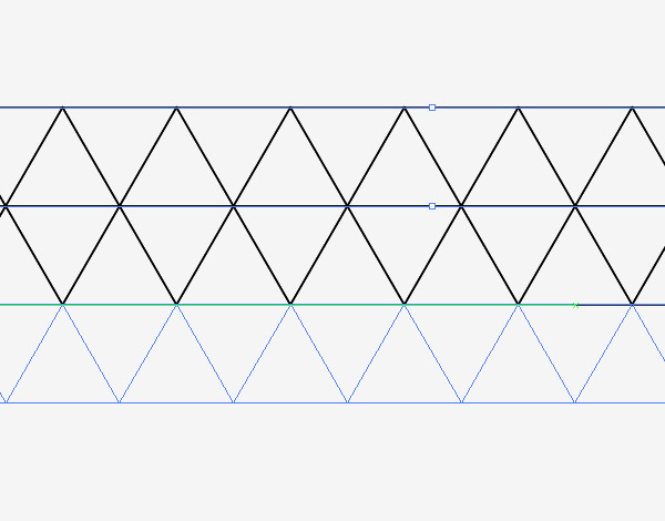 همه مثلث ها را انتخاب کنید یک کپی از آنها تهیه کنید. کپی ها را سمت پایین اصلی ها قرار دهید. Clrt+D را فشار دهید تا این کپی کردن چندین دفعه تکرار شود و یک صفحه کامل و پر از مثلث های مشبک ایجاد گردد.