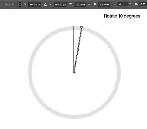 هنوز دکمه Enter را فشار ندهید. تا زمانی که کنترل تغییر Transform آنجاست مقدار آن را تغییر دهید. میزان چرخش Rotation را 10 درجه قرار دهید و دکمه Enter را دو بار فشار دهید.