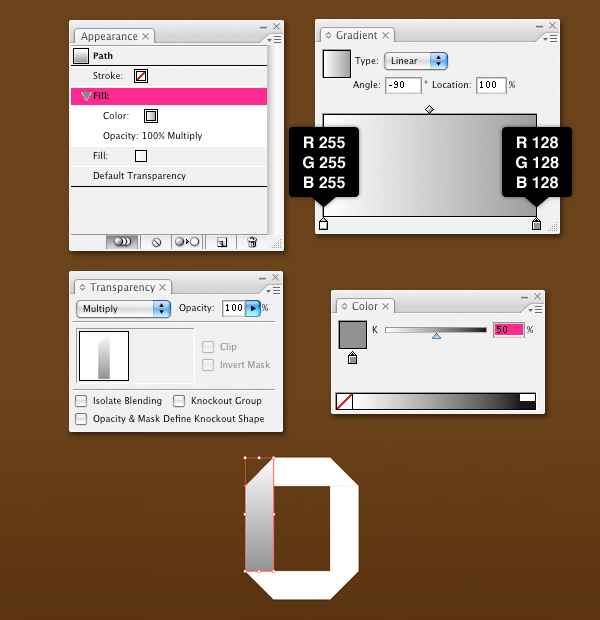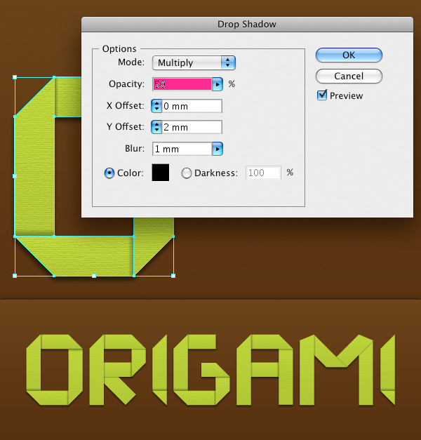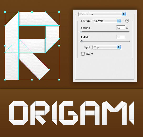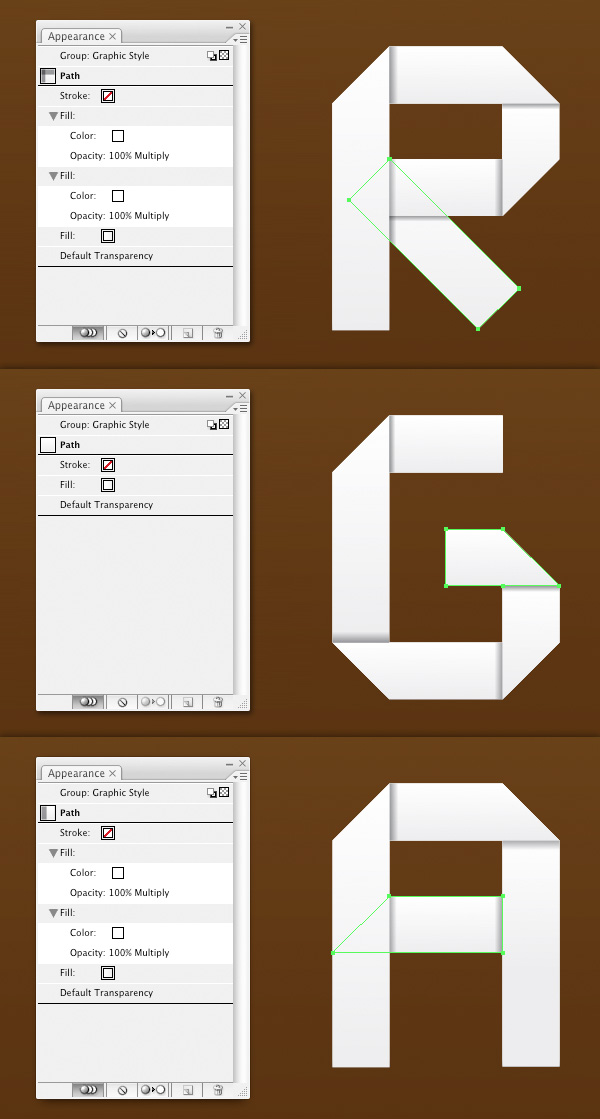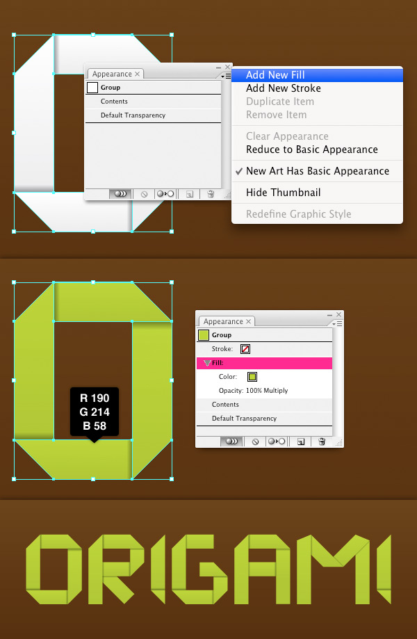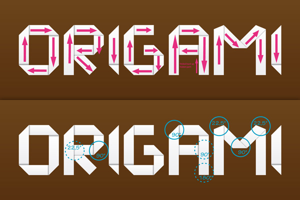 حال شما یک مجموعه از حروف به سبک Origami دارید، اگر شما میخواهید ظاهر آن را بیشتر تغییر دهید به سادگی میتوانید این کار را انجام دهید، با group کردن هر حرف و تغییر ظاهر آن group.