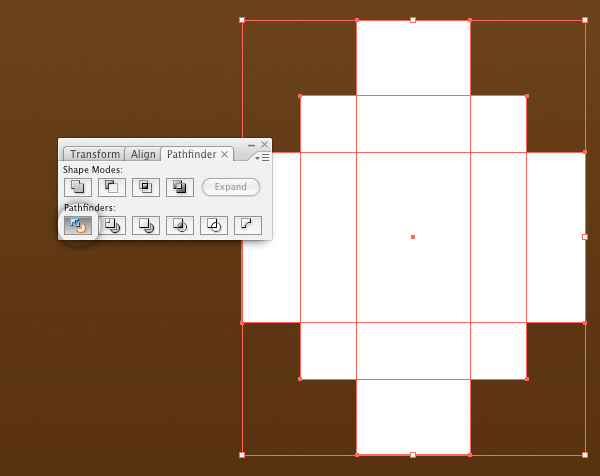 تمام شیپ های سفید را انتخاب کرده(select ) و پنل path finder را باز کنید. حال از گزینه Divde برای ایجاد اشکال چندگانه استفاده مینماییم.