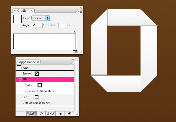 شیپ انتخاب شده نشان میدهد. در پنل appearance از gradient fill نسخه دیگری ایجاد میکنیم و
