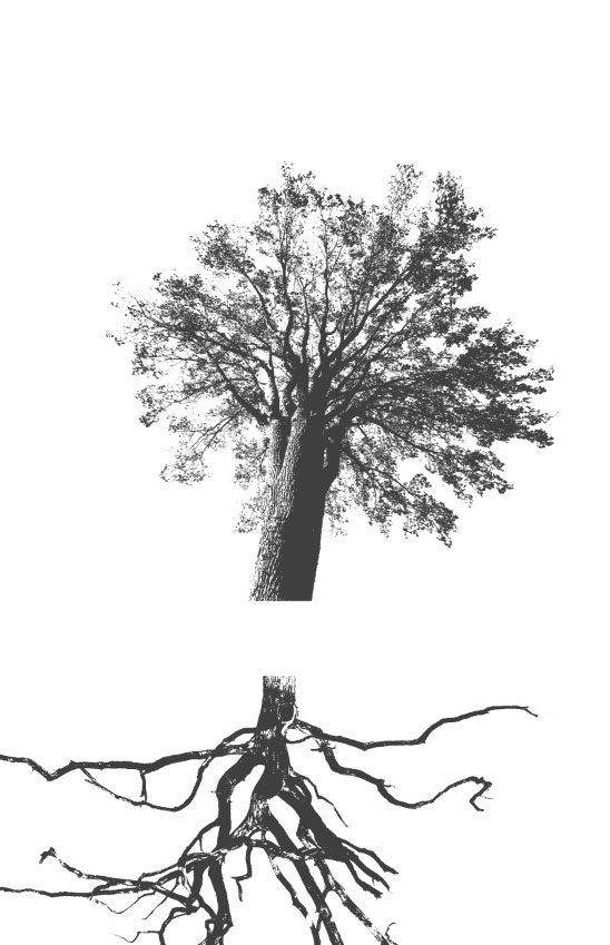 مراحل بالا را برای تصویر ریشه درخت هم تکرار میکنیم. تصویر ریشه را هم به فایل پوستر اضافه می کنیم و با تغییر موقعیت، آن را طوری قرار می دهیم که گویی ریشه همان درخت است.