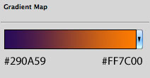 حالا وقت آن است که کمی رنگ به پوسترمان اضافه کنیم. برای این کار یک لایه Gradient Map Adjustment ، بالای باقی لایه ها ایجاد می کنیم. این لایه را در حالت Overlay قرار داده و از طیفی مثل طیف زیر استفاده می کنیم.