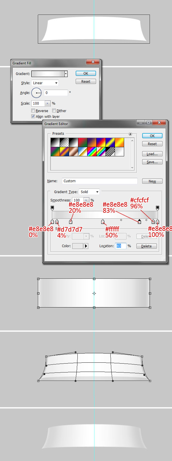 برای ایجاد gradient کلاهک همان کاری را که برای فنجان کردید انجام دهید. اما زمانیکه به transform شی رسیدید ابزار را روی free transform روی حالت warp قرار دهید تا لایه gradient بتواند شی کلاهک را بپوشاند. فراموش نکنید که یک لایه جدید درست کرده و قبل از تبدیل ،آن لایه را با gradient ترکیب کنید.