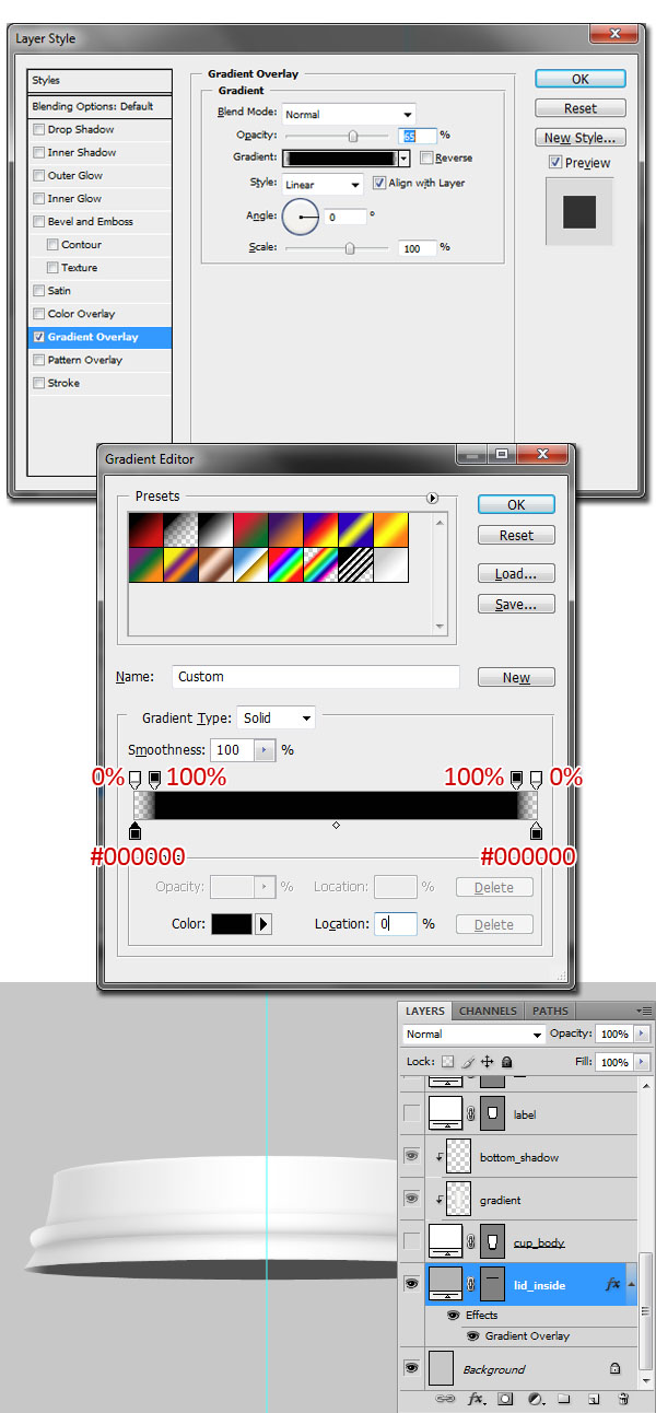 بر روی لایه lid_inside دابل کلیک نمایید و gradient overlay درست نمایید.