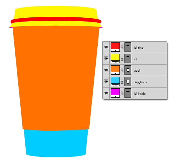 در اینجا شما بخشهایی که برای ایجاد فنجان قهوه لازم داریم را میتوانید ببینید.