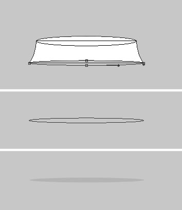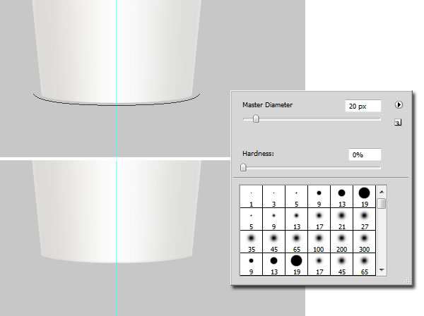 با ابزار pen یک مسیر زیر فنجان ایجاد کرده که از قوس پایین فنجان ها پیروی میکند. یک لایه جدید بر روی لایه gradient ایجاد کرده ونام آن را bottom_shadowبگذارید، مسیر را با یک براش نرم به رنگ سیاه (#000) stroke نمایید. بالایه انتخاب شده ALT + Cmd/Ctrl + G را فشار داده تا یک Clipping mask ایجاد شود .