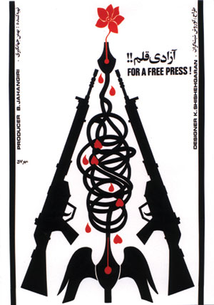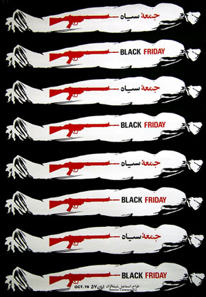 2. در کتاب les 500 offiches de mai 68 . که پوستر هایی انقلاب 68 فرانسه را نمایش می دهد پوستری ایرانی موجود است ، که هرچند در خارج از ایران منتشر شده اما از اولین پوستر هایی سیاسی ایران به شمار می آید .
