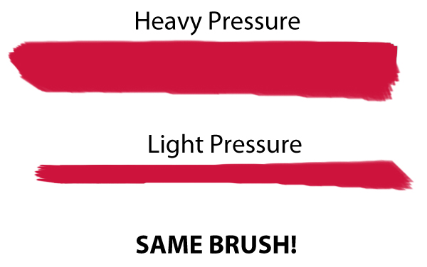 سطح فشار برای بیشتر تبلت ها 256, 512, 1024 یا 2048 است. این اعداد به سطح حساسیت قلم بستگی دارد. سطوح بالاتر به فشار حساس تر هستند و قطعاً اگر آنها را برای طراحی انتخاب کنید، بهترین نتیجه را خلق می کنند. سطح فشار در این قلم ها همانند قلم های معمولی، مداد یا قطعه ای گچ است. هرچه بیشتر فشار دهید خطوط، متراکم ترو پررنگ تر می شوند. حساسیت به فشار در قلم ها به خصوص برای طراحان دیجیتال که نیاز به کنترل ضخامت، رنگ و انحنای خطوط دارند بسیارمهم است. بعضی از قلم ها همچنین امکان کج کردن و چرخاندن قلم را برای کنترل و جهت یابی درست خطوط دارند.