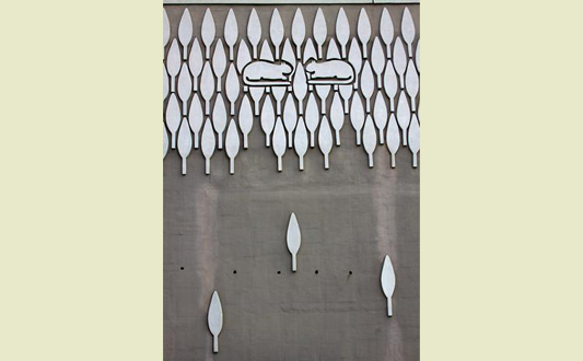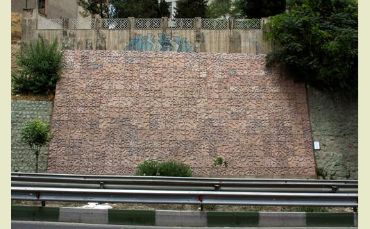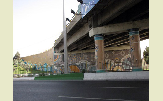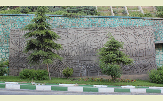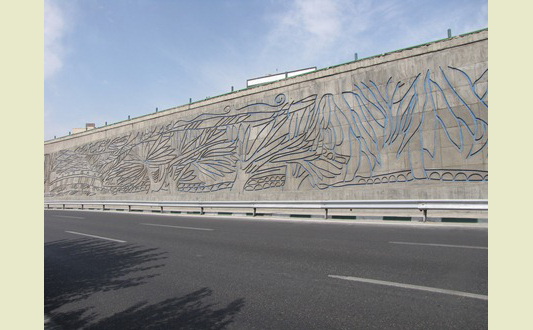 ترجمان خطی نقوش و انتزاع موتیفها با مختصات گرافیک شهری لحاظ گردیده و برای حاشیه بزرگراهی مناسب سازی شده است. قالبکاری این اثر در کارگاه انجام شده و سپس در مکان مورد نظر نصب گردیده است.