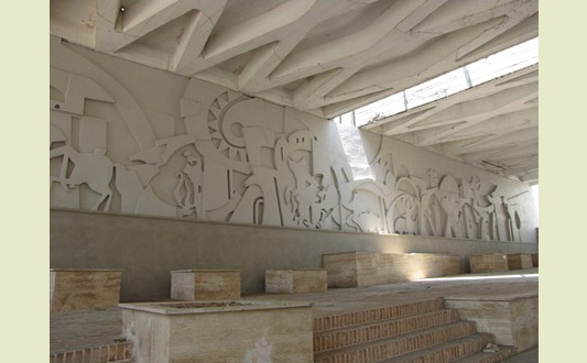 این اثر نمایشی از دلیریها و ستایشی از آگاهی است که از راههایی پیچیده و ناهموار در طول تاریخ گذر نموده و جاودانه است. طرح موجود استعارهای از اسطورههای ایران زمین مانند آرش کمانگیر، رستم و سهراب، کاوه آهنگر و... می باشد که با تکنیک ماندگار نقشبرجسته بتنی در قالبی فیگوراتیو و فرمالیستی اجرا شده است.