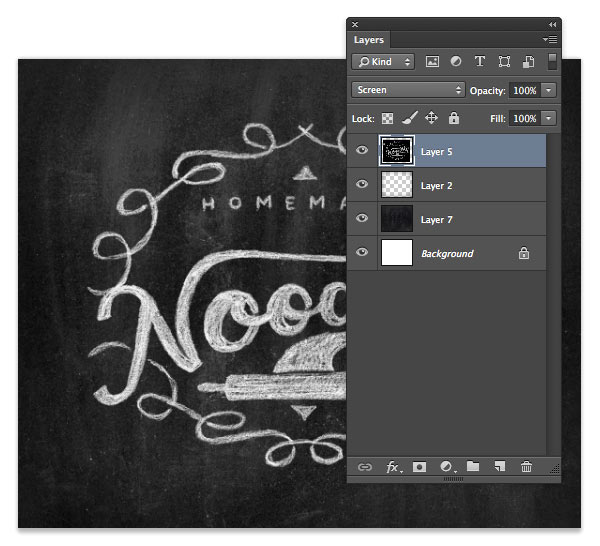 در این نقطه بکگراند تصویر لوگوی اسکیسی در حال نمایش است. در پانل Layers در حالیکه هنوز لایه در حالت انتخاب شده است، حالت blending را به Screen تغییر دهید. این عمل باعث نمایش اسکیس سفید خواهد شد.