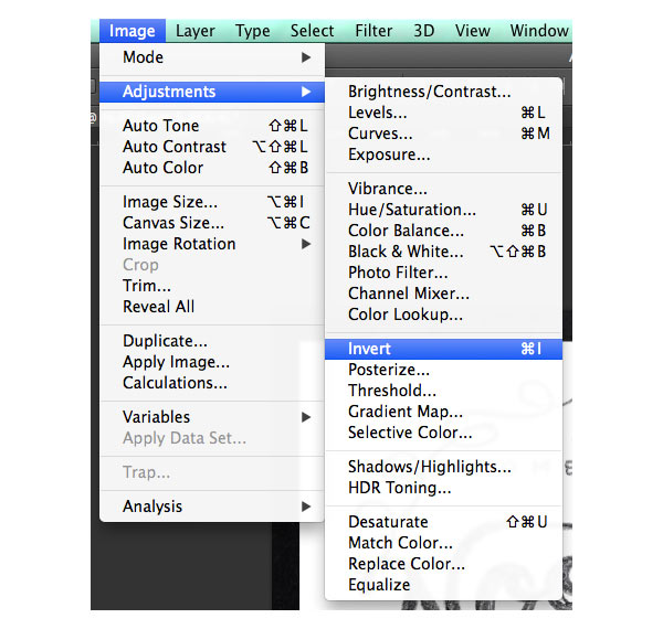 با انتخاب لایه جدید اسکیس لوگوی خود، Ctrl-I را فشار دهید یا به منویImages>Adjustments>Invertبروید.