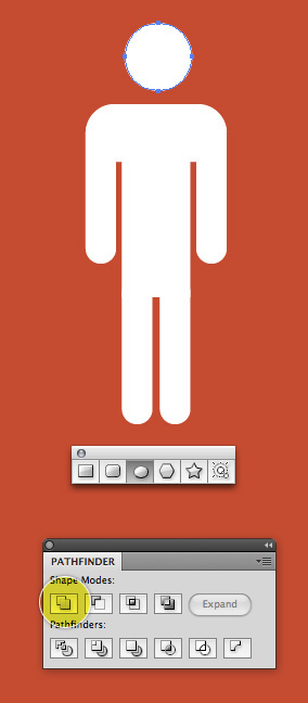 سرانجام، از یک دایره برای سر استفاده کنید. همه شکل ها را که انسان را در بر دارد انتخاب کنید و در Pathfinder روی Unite کلیک کنید.