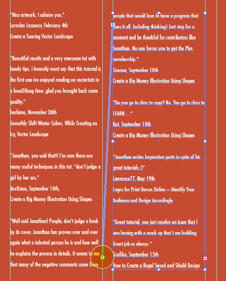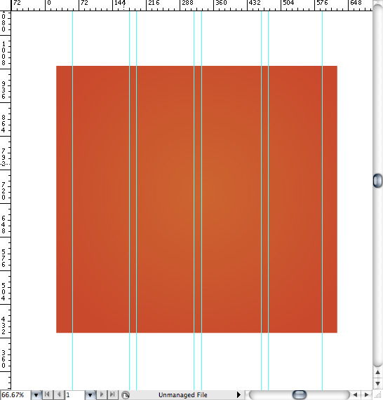 فرایند را برای دیگر ستون ها با نتیجه نهایی که در زیر آورده شده تکرار کنید. مستطیل نارنجی را تا کمی بزرگتر از آخرین guide ها بزرگ کنید.