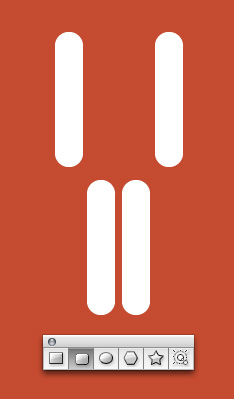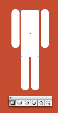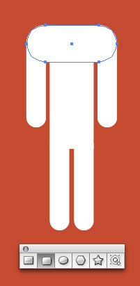 برای ایجاد تمثال یک انسان، از اشکال ساده استفاده کنید. با Rounded Rectangle Tool شروع کنید. شعاع لبه ها را با نگاه داشتن نشانه ها Up و Down همنطور که در تصویر ترسیم شده است تنظیم کنید.
