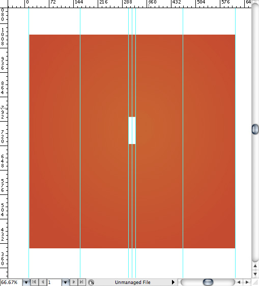 با استفاده از Rectangle Tool یک مستطیل باریک سفید در خط مرکزی که به پهنای فاصله بین دو ستون باشد ترسیم کنید. Guide ها را به دو طرف مستطیل کوچک اضافه کنید و guide مرکزی را پاک کنید. نکته: guideها به صورت پیش فرض قفل هستند. به منظور پاک نمودن guide به منوی View > Guides > رفته و Lock Guidesغیر فعال کنید. سپس روی guide کلیک کرده و کلید deleteرا فشار دهید.