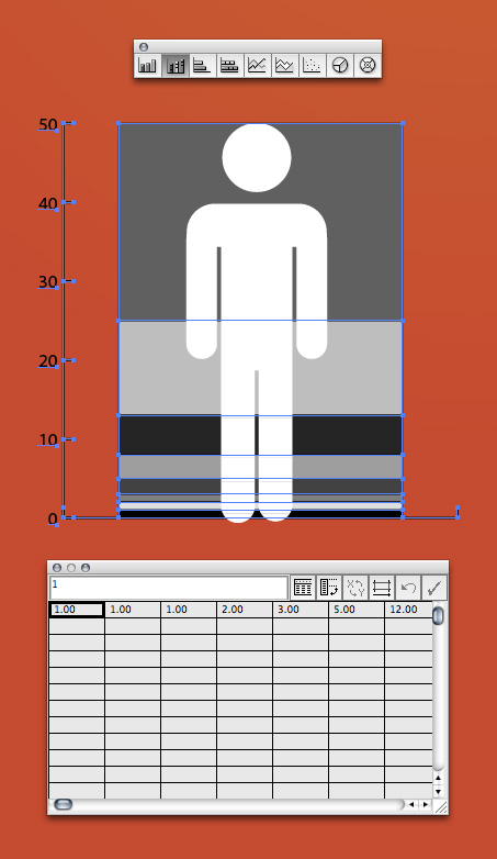 برای ایجاد یک گراف مناسب تر ما از انسان برای بیان اطلاعات استفاده خواهیم کرد. برای ترسیم گراف هم ارتفاع انسان از طریق Stacked Column Graph Tool کلیک و درگ می کنیم. مقادیر خود را وارد و سپس روی تیک کلیک کنید.