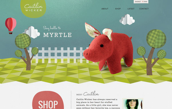 قرار دادن متن در پس زمینه تصویر باعث ایجاد یک تصویر طبیعی میشود و نیازی به حقههای گوناگون و تغییرات زیاد در عکس اصلی ندارد. بازی زیرکانه با افکتهای شیدینگ ، همانند Caitlin Wicker’s site در تصویر بالا ، جهت جانمایی متن، باعث ایجاد عمق در تصویر شده است.
