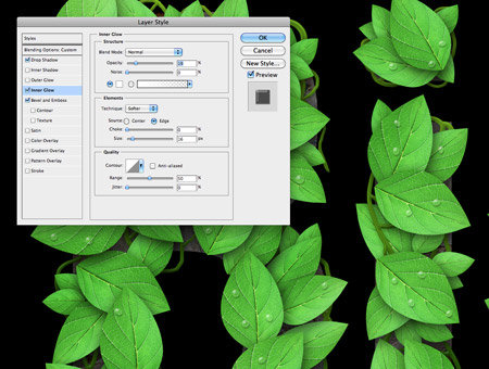 یک Inner Glow به درخشش سفیدی مرز قطره کمک می کند. راه حل کم کردن opacity برای ایجاد یک اثر نامحسوس است.