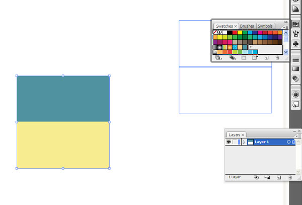نیمه پایینی را با یک چهارگوش پر شده از رنگ قهوه ای روشن مایل به زرد و خاکستری بپوشانید. سپس همه را انتخاب کنید Select All (Control + Aو آن را در پنل Swatchesمان قرار دهید. تبریک می گویم شما یک الگو ساختید!