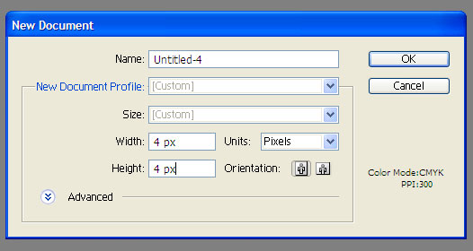 قبل از آنکه بخواهیم نمای کلی لایه های مان را شروع کنیم، نیازمند ایجاد الگوی خط آبی افقی هستیم. برای انجام این کار یک صفحه جدید ایلستریتور ایجاد کنید. ارتفاع و عرض آن را 4 پیکسل بدهید. سپس یک چهارگوش پرشده از رنگ آبی کم رنگ مان ایجاد کنید (#4F919F), و نیمه بالایی پرده نقاشی را بپوشانید.