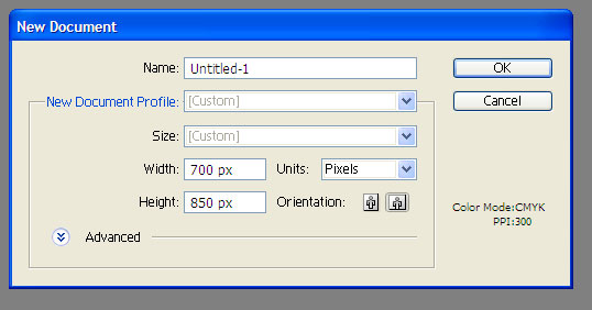 حالا که ما تصاویر مرجع و الگوی ساخته شده را داریم، وقت آن است که یک صفحه جدید در ایلستریتور بسازیم. من از یک صفحه با اندازه 700 در 850 پیکسل استفاده کردم.
