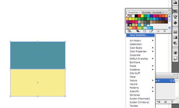 حالا ما باید این تنظیم Swatch را ذخیره کنیم تا بتوانیم در پوسترمان استفاده کنیم. در گوشه ی چپ و پایین پنل Swatches مان ما Save Swatchesرا از منوی Swatches Library Menuانتخاب می کنیم. نام آن را هرچه که می خواهید بگذارید. من از نام pattern استفاده کردم. شما حالا می توانید صفحه را ببنید چرا که بیشتر از این نیازی به آن نداریم.