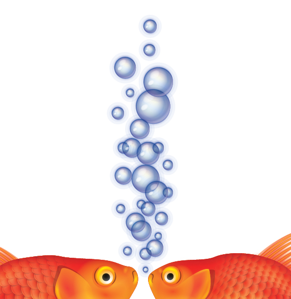 زمان ترسیم تعدادی حباب رسیده است! من می خواهم در تصویرم به یک جزئیاتی کارتون گونه دستیابم، بنابراین واقع گرایی یک ایده اساسی نیست. شما می توانید یک حباب پایه Graphic Style با یک مجموعه از gradients ایجاد نمائید. که اساسا با یک شکل شعاعی که با استفاده از Ellipse به کار میرود.