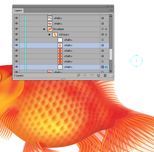 بعد ار استفاده از ابزار Artboard(Shift + O) برای بریدن محیط تصویرم، من حالا تصویر ماهی ها را تمام می کنم. Envelope Distort یک ابزار بزرگ برای کار کردن با آن است و می تواند برای ایجاد عمق در شکل ها و بافت هایی شما که تا قبل از این نمی توانستید کمک نماید. این خیلی با ارزش است که شما برای آزمودن و دیدن آن چیزهایی از effects که شما می توانید ایجاد کنید تلاش نمائید.