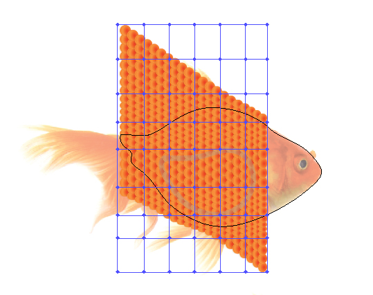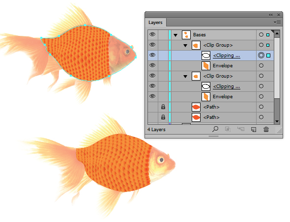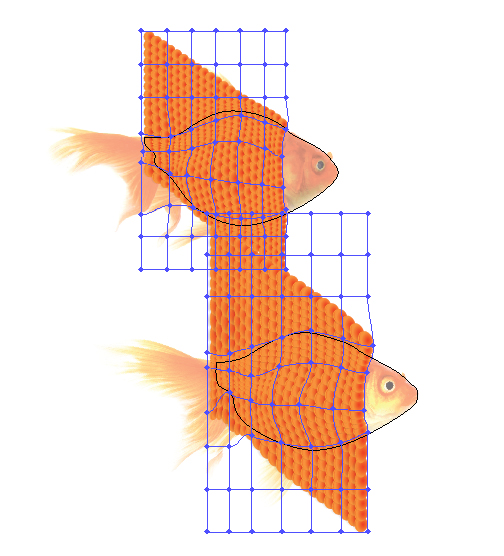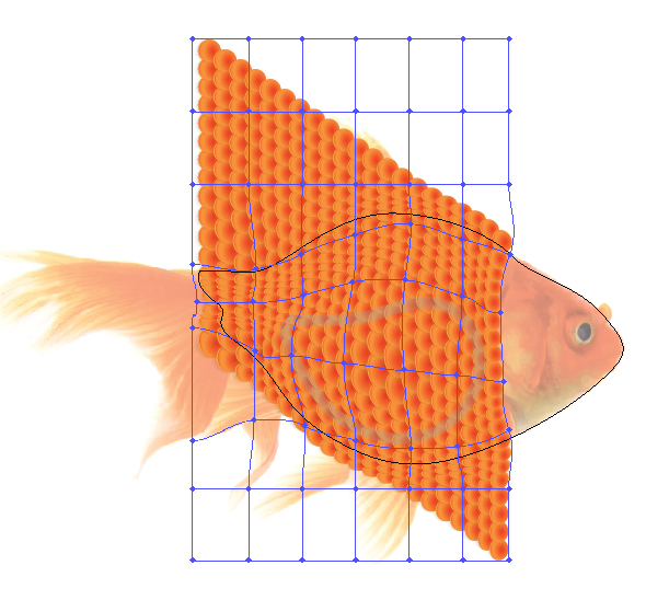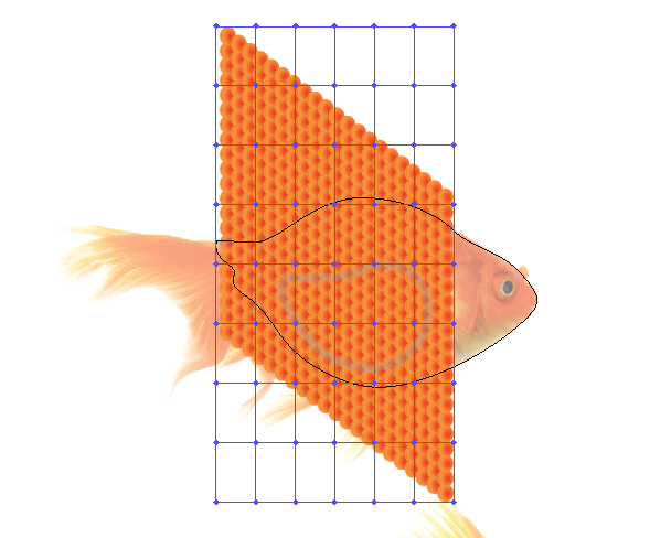 یک شکل کلی ماهی را تکرار کنید و سپس از یان برای ایجاد یک Clipping Mask (Ctrl + 7) با شبکه هایش استفاده کنید.