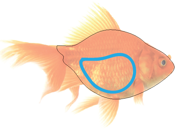 به عنوان یک راهنما مفید، من دور منطقه اصلی که معده ماهی برآمده گردیده، ترسیم می کنم.