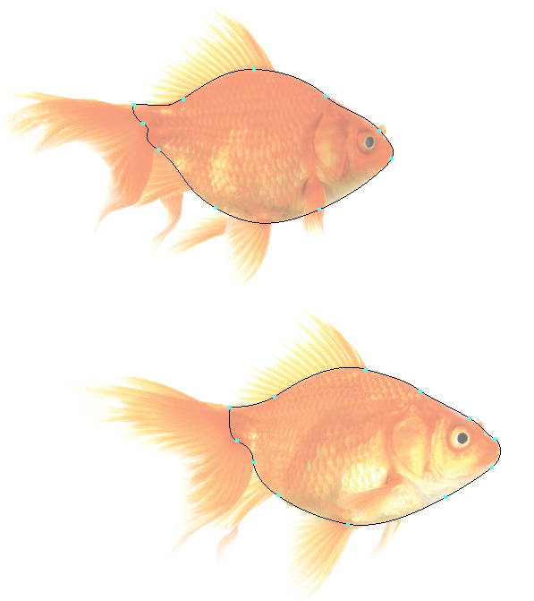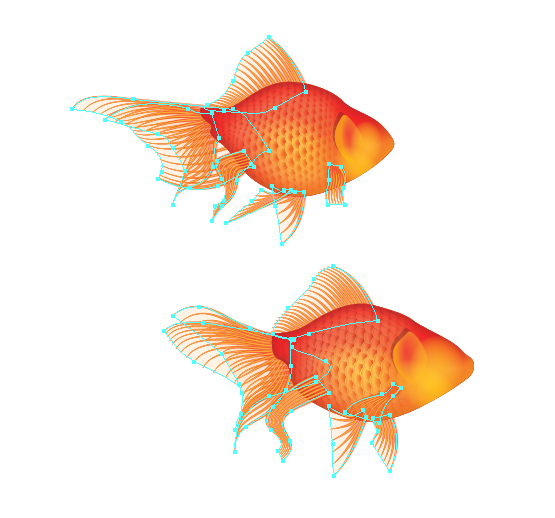 من با ابزار Direct Selection برای انتخاب ردیف های شبکه و کاهش ارتفاع شروع می کنم. شما می توانید آن را در بالا و زیر خط خارجی بدن ماهی ببینید.