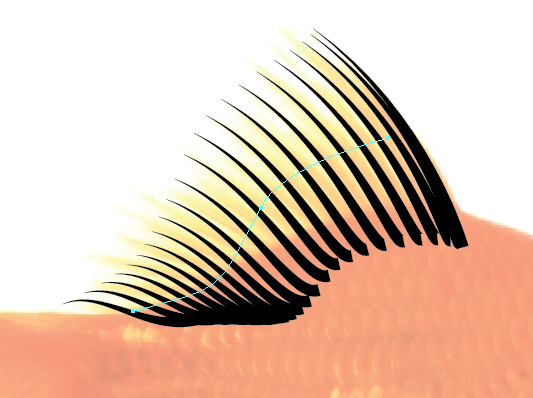 باله باید مستقیم باشد، حالا می خاهیم بدان یک افکت wave بدهیم. یک خط منحنی در میانه باله ترسیم کنید و پس از آن خط و blend را انتخاب کنید و به Object > Blend > Replace Spine بروید. حالا blend مسیر منحنی که ایجاد شده بود دنبال می کند.
