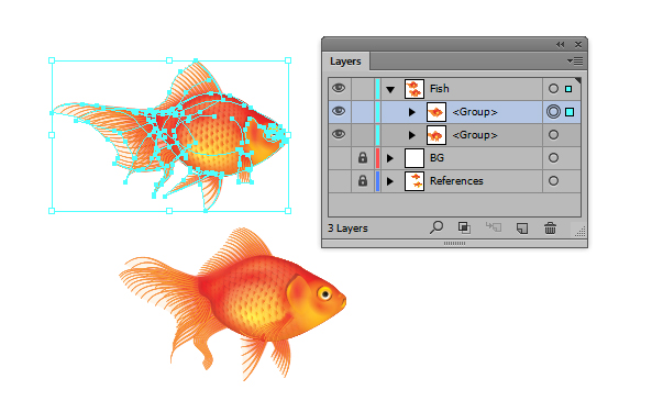 همه بخش های ماهی را باهم Group کنید. Ctrl + G