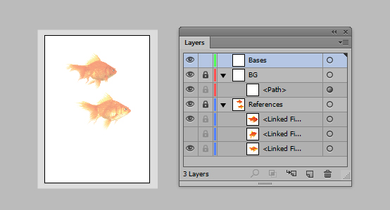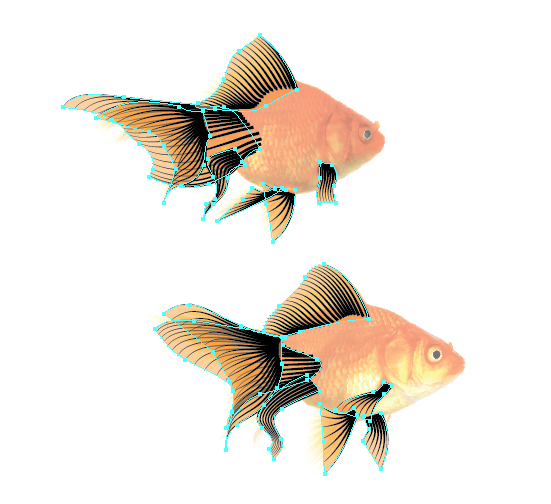 من عکس ها را در فتوشاپ cropp نموده ام و سپس یک New document را در Adobe Illustrator ایجاد کرده ام و آن ها را در File > و canvas قرار داده ام. من به پیچاندن کامل یکی از عکس های ماهی ها و چرخش کم آن ها نیاز دارم که آن ها نهایتا در یک جهت مشابه به نظر برسند. این خیلی آسان است که آن ها را در یک راه مشابه ارائه کنیم.