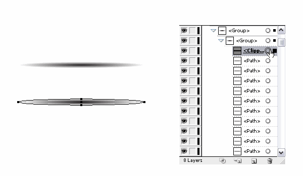به مسیر Object > Blend > Make (Alt-Control-B) بازگردید. (2) نتیجه یک برق در چشم خواهد بود. چیزهای مشابه را تکرار کنید یا شکل اول را برای رسیدن به یک برق کوچک تر در قسمت پایین و راست تخم چشم اندازه کنید، بعد از آنکه به پایان رسید، همین کارها را برای چشم چپ انجام دهید.