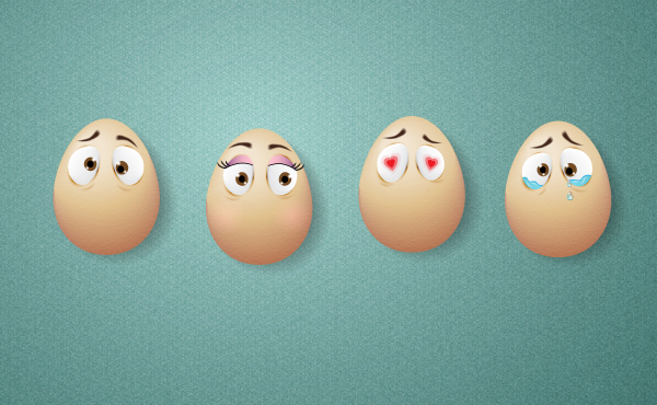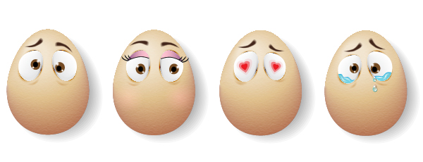 این آخرین کاراکتر است و برای ساخت آن ابتدا یک کپی از کاراکتر اولین تخم مرغ بگیرید. چشم ها را مقداری به یکدیگر نزدیک کنید، چشم چپ را مقداری به سمت پایین حرکت دهید و همچنین آن را مقداری کوچکتر کنید. این کار را با تخم چشم و برق چشم ها ادامه دهید (1) سپس موقعیت ابروها را تغییر دهید (2) سپس موقعیت چین و چروک های زیر چشم ها را تغییر دهید. (3)
