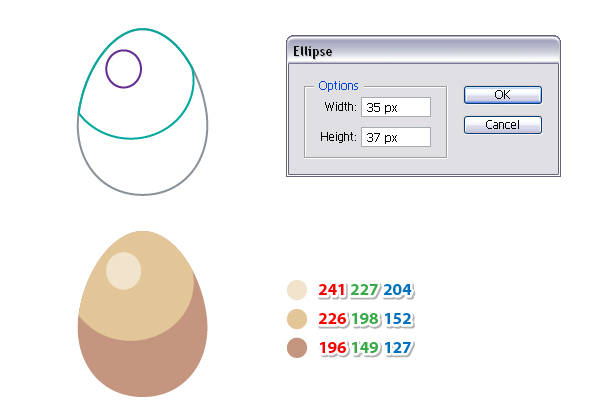 یک بیضی تکیه گاه دیگر در قسمت بالا و چپ شکل تخم مرغ شبیه به تصویر بکشید. این بار کار تمام است، هر سه شکل را با رنگ های نشان داده شده پر کنید.