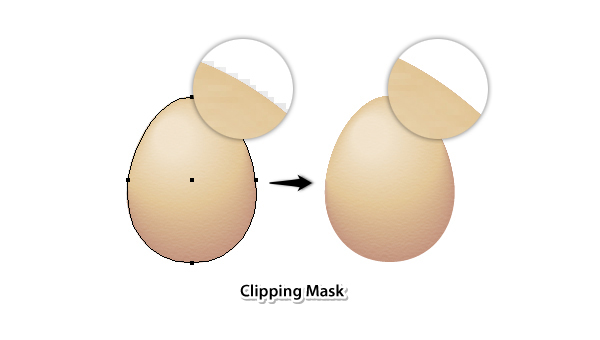 به منظور تمیز کردن لبه های تخم مرغ بعد از افکتی که اعمال شد شما از یک ماسک mask استفاده خواهید کرد. ابتدا یک کپی دیگر از شکل تخم مرغ بگیرید و آن را بالای هر چیزی بیاورید با رفتن به مسییر Object > Arrange > Bring to Front (Shift-Control-]) سپس fill-none و stroke-none قرار دهید. حالا این کپی و شکل با افکت اعمال شده را انتخاب کنید و مسیر Object > Clipping Mask > Make (Control-7). را دنبال کنید.