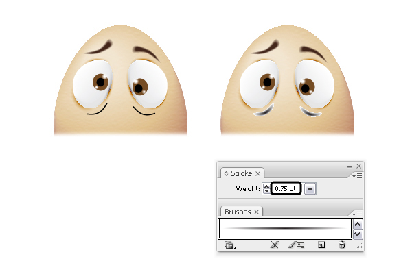 از ابزار قلم یا مداد برای کشیدن یک مسیر منحنی در زیر هر چشم استفاده کنید. این مسیرها را با Smooth Black Art Brush رنگ آمیزی نمایید و مقدار Stroke Weight را 0.75 pt. قرار دهید.