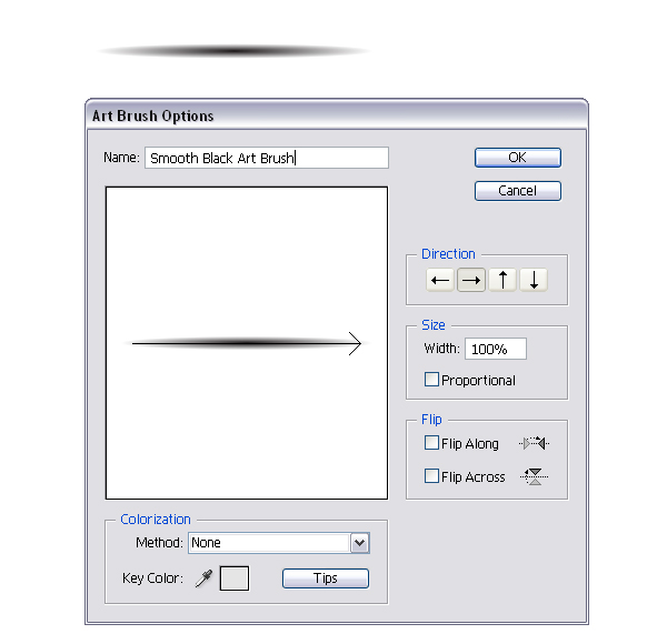 حالا شما می توانید قلموی تان را ذخیره نمایید. گروه بیضی ها را انتخاب کنید و در پنل Brushesبیاندازید و New Art Brushرا انتخاب کنید. به عنوان نام Smooth Black Art Brush را تایپ کنید و مابقی تنظیمات را به همان صورت رها کنید.