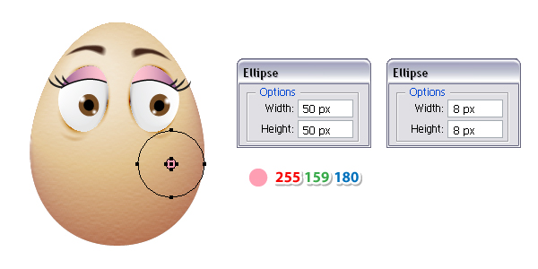 ابزار بیضی را بگیرید و دو دایره با ابعاد نشان داده شده رسم نمایید. هر دوی آنها را با صورتی پر کنید اما Opacity دایره بزرگتر را صفر قرار دهید.