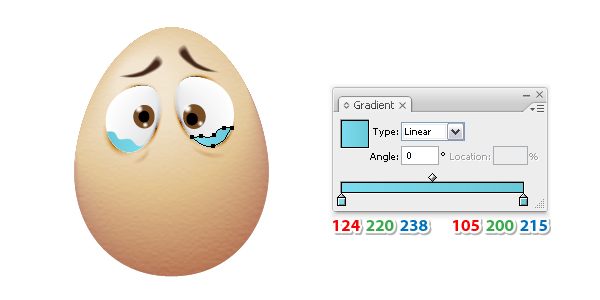 شکل آب از چشم راست را با سایه ی خطی نشان داده شده پر کنید سپس از سایه مشابه برای چشم چپ استفاده کنید اما مقدار زاویه را 180 درجه قرار دهید.