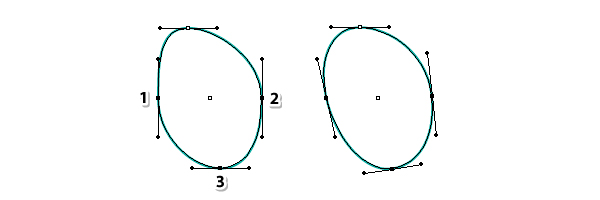 از ابزار Direct Selection Tool (A) برای انتخاب نقاط 1و 2و 3 استفاده کنید و زاویه های آنها را شبیه به تصویر زیر ویرایش نمایید.