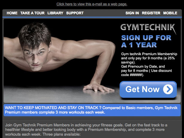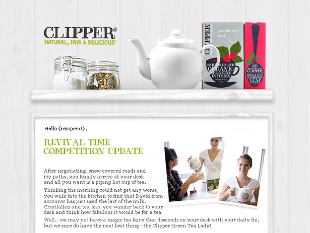 در این ایمیل، آدرس دهی به دریافتکننده از طریق اسم، فرم شخصی خاصی را ایجاد کرده است. این طراحی منعکس کننده طراحی وب سایت این شرکت بوده و محصول را همزمان در جلو و مرکز طرح مشخص ساخته است.