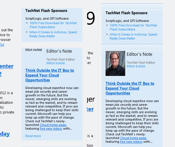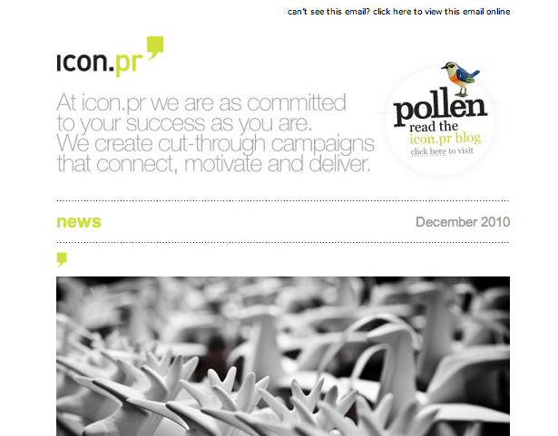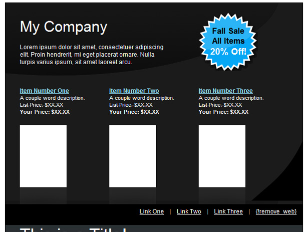 در این مثال ببینید که جداول آبی رنگ، به طور مناسب در این خبرنامه ایمیلی که به طور نرمال، تصاویر گرادیانی را در پس زمینه دارد، آورده شده است. با این حال، میتوانید ببینید که جدول پشت متن، آبی است و بنابراین حتی بدون تصویر گرادیانی، نیز متن خوانا است.
