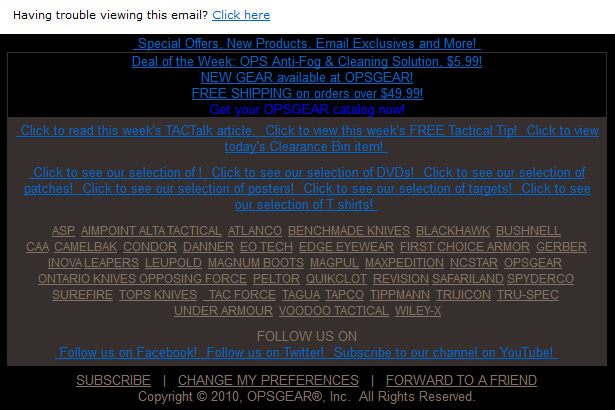 در این ایمیل، تصاویر بسیار و البته با حجم بالا بکار برده شده است. در عین حال لینک مشخص آغازین، به خوبی توانسته است کاربران را در صورت عدم مشاهده مطالب، به سمت وب سایت مورد نظر هدایت کند.
