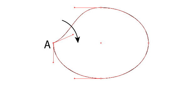 رنگ های Fill و Stroke مهم نیستند چون ابتدا ما فرم های اولیه را ایجاد می کنیم و بعدتر به آن رنگ می دهیم. ابزار Direct Selection Tool (A) را برگزینید و Point A را انتخاب کنید. حالا در حالی که کلید Option/Alt را نگه داشته اید یکی از دسته های نقطه A را بچرخانید.